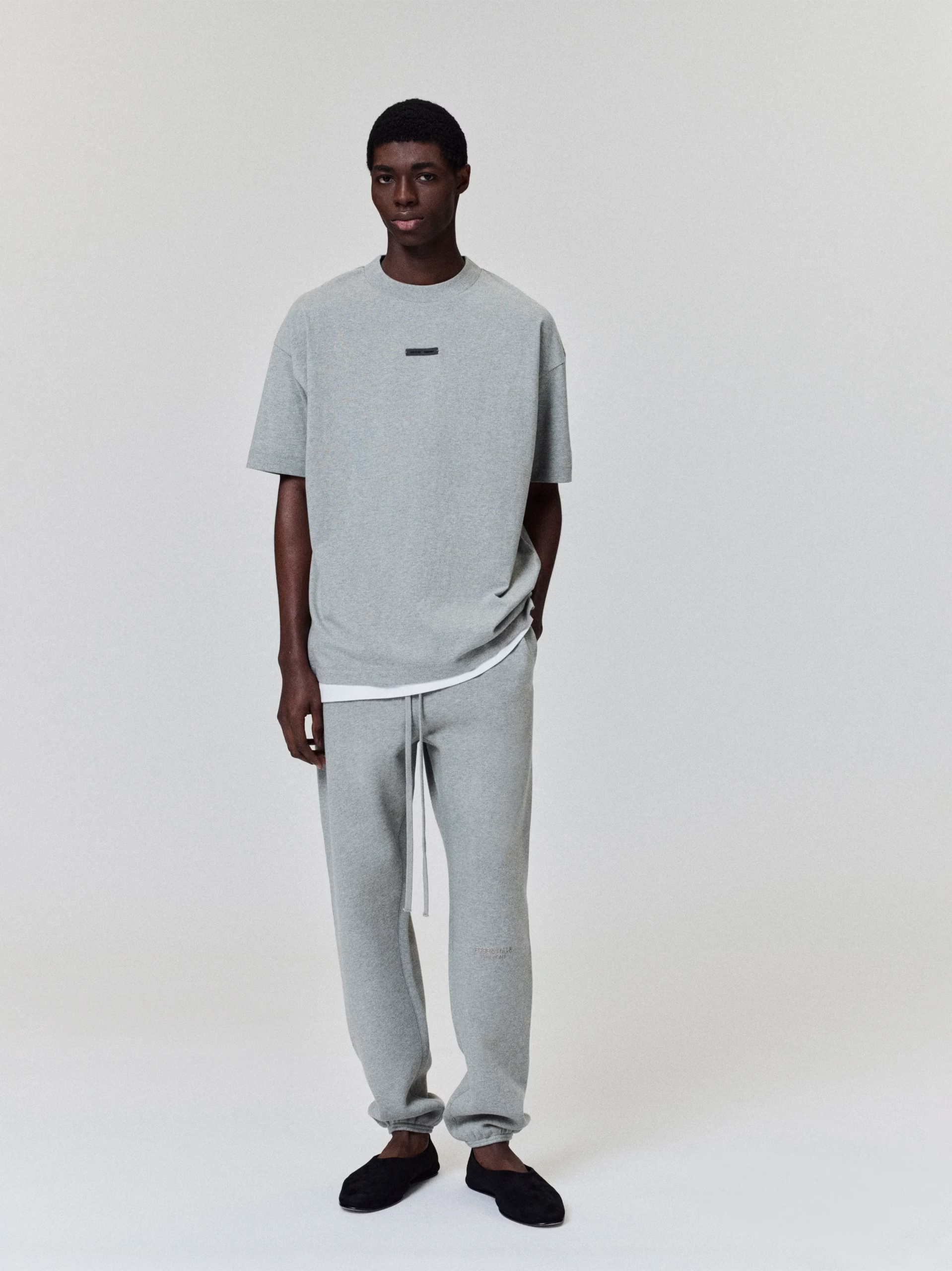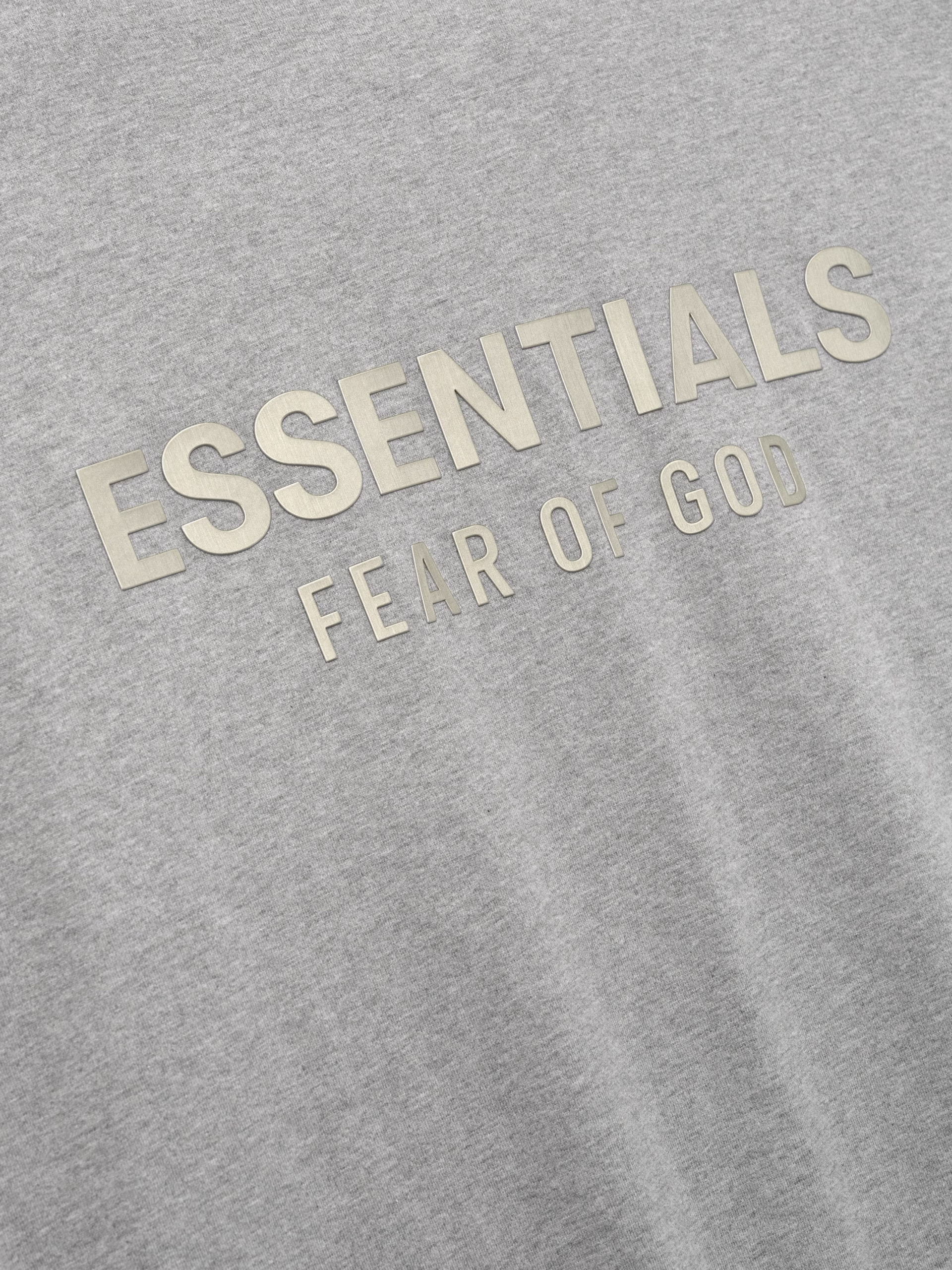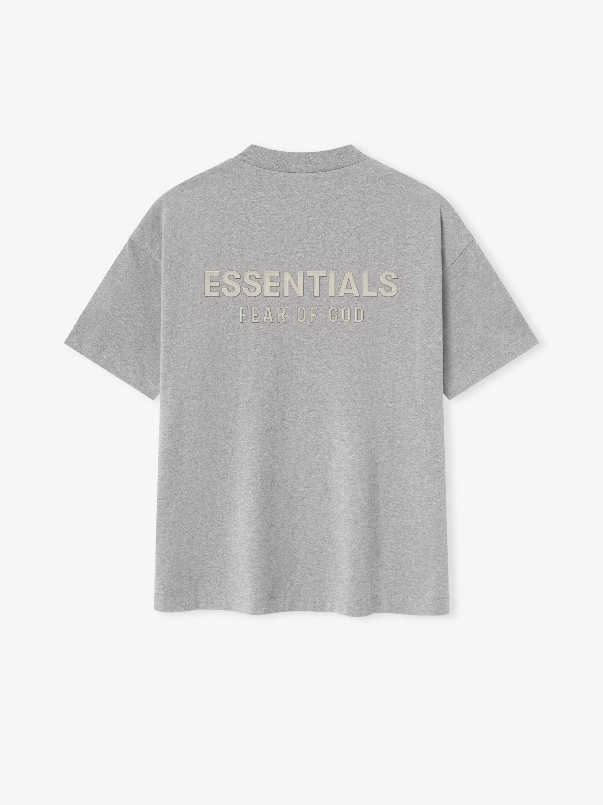 The Classic Tee is made from medium-weight 100% cotton jersey. The rib-knit crewneck tee features a classic fit with signature Fear of God relaxed proportions for everyday wear. Branding includes a Fear of God Essentials rubberized label at the center front and a new "Essentials Fear of God" beveled metallic logo across the back.