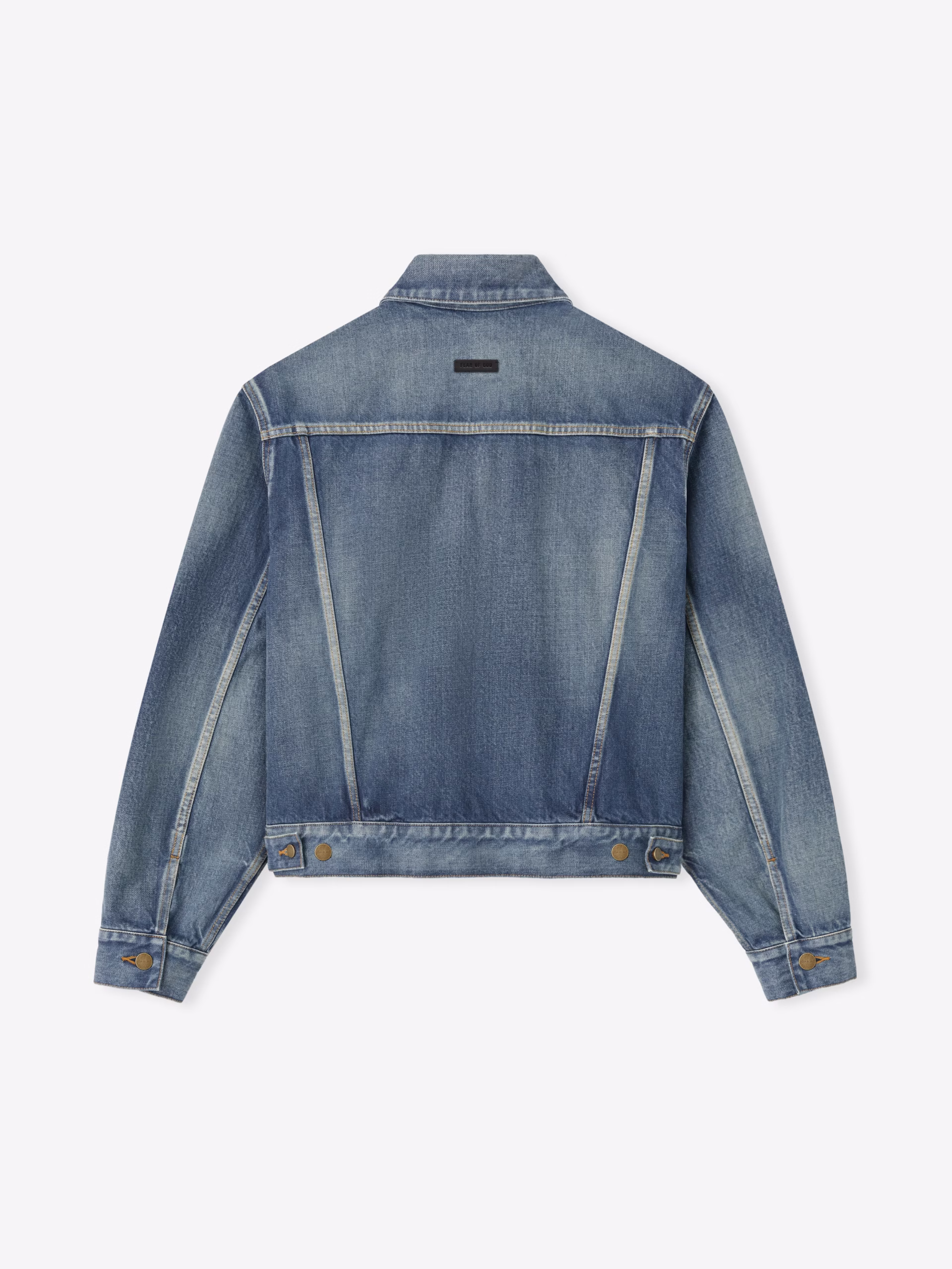 The Denim Trucker Jacket is crafted in Japan from a soft faded denim in a cropped, boxy fit for timeless vintage style. The iconic trucker features a shirt collar, flap pockets, antique metal hardware.