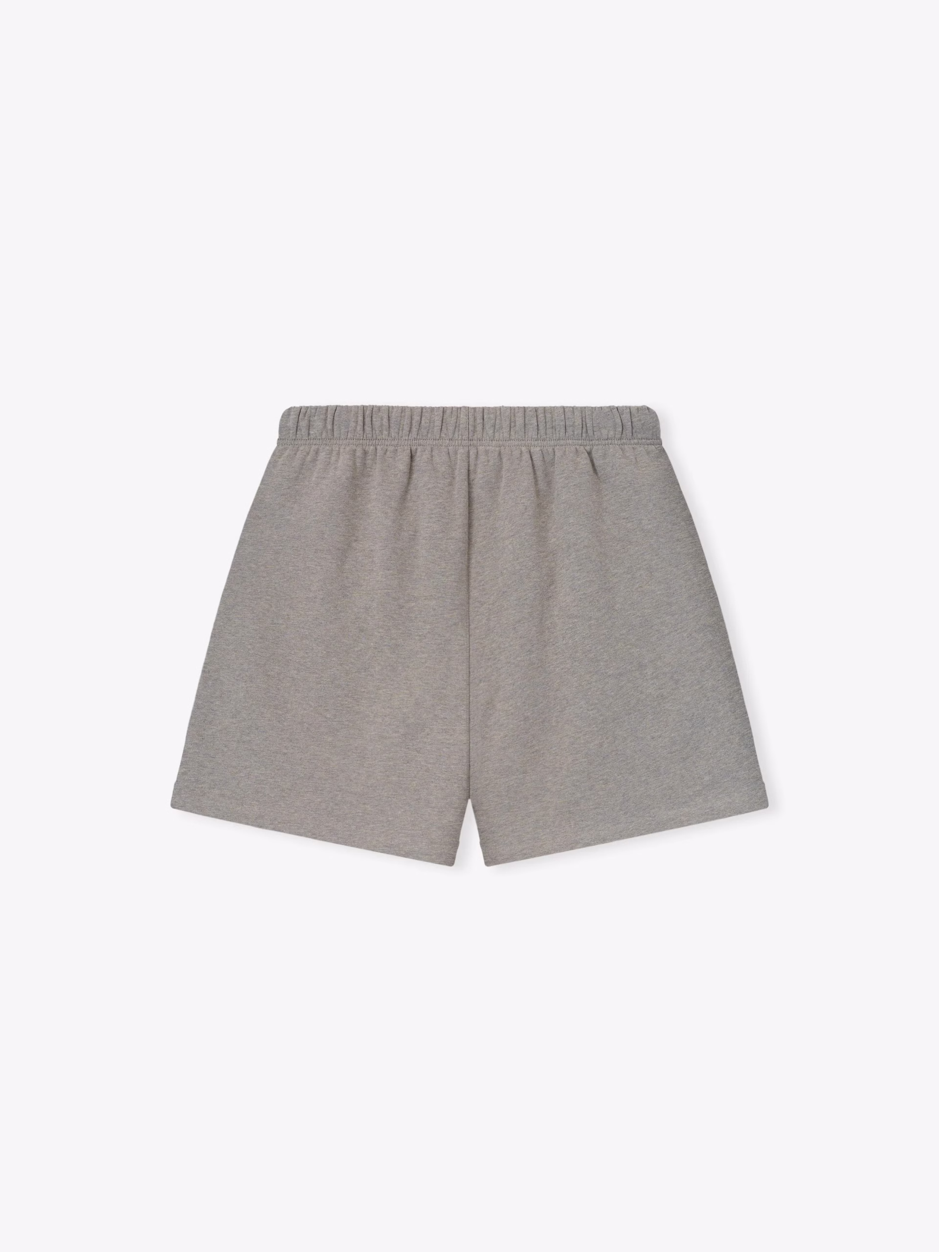 The Dodgers Classic Sweatshort is made in 380gsm core fleece to provide body and structure to a relaxed fit. An L.A. Essentials puffer print lockup and MLB logo are branded on legs. Additional details include an encased elastic waistband with elongated drawstrings, and side pockets. A Fear of God Essentials rubberized label is stitched on the center front.