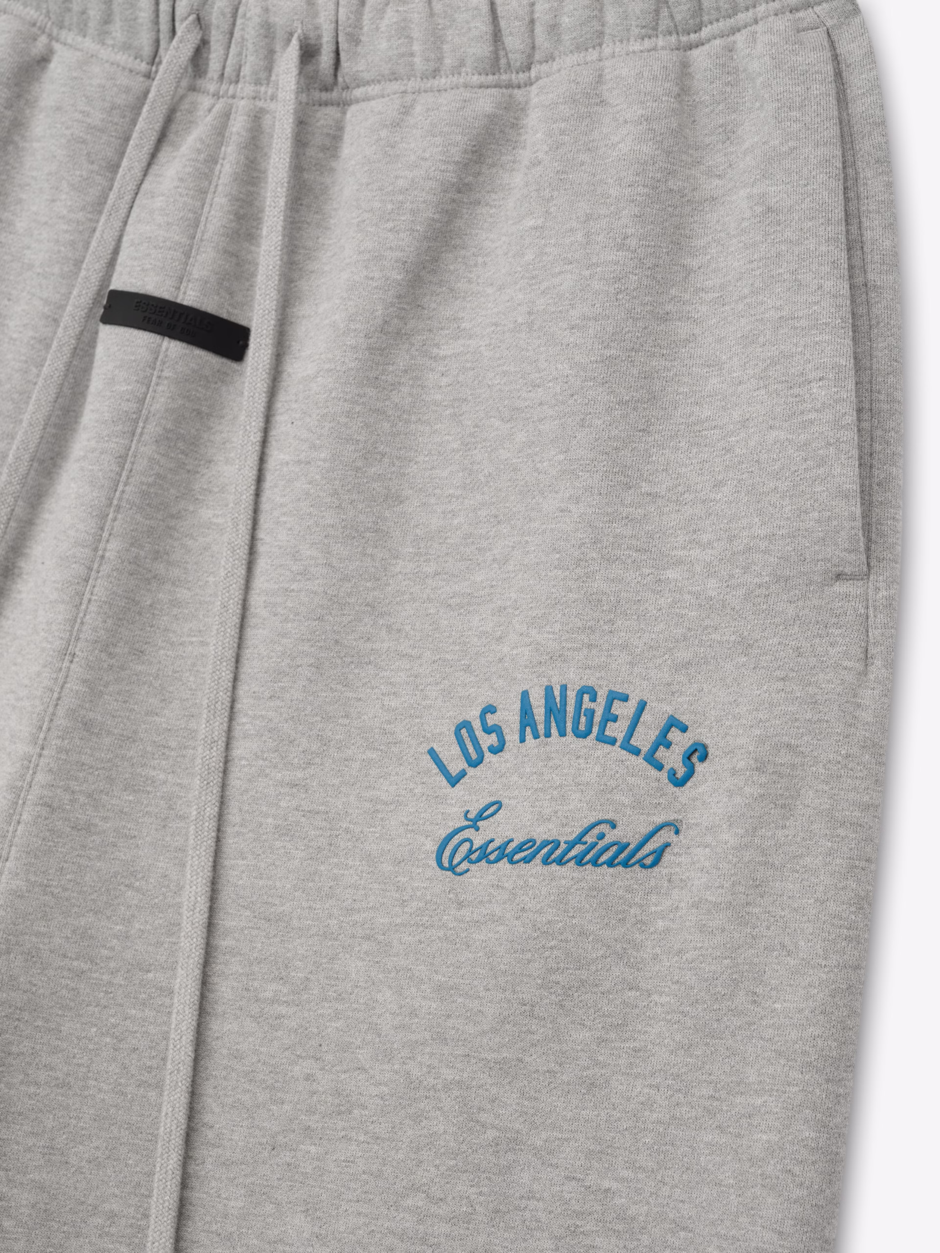 The Dodgers Lounge Sweatpant is constructed from a heavy 480gsm fleece and designed with a voluminous, wide-leg fit. Branding features a bold Dodgers HD-printed logo down one leg, complemented by a Los Angeles x Essentials script lockup on the other. Functional details include an elastic waistband with elongated drawstrings and side pockets. The look is finished with the Essentials Fear of God black bar at the center front.