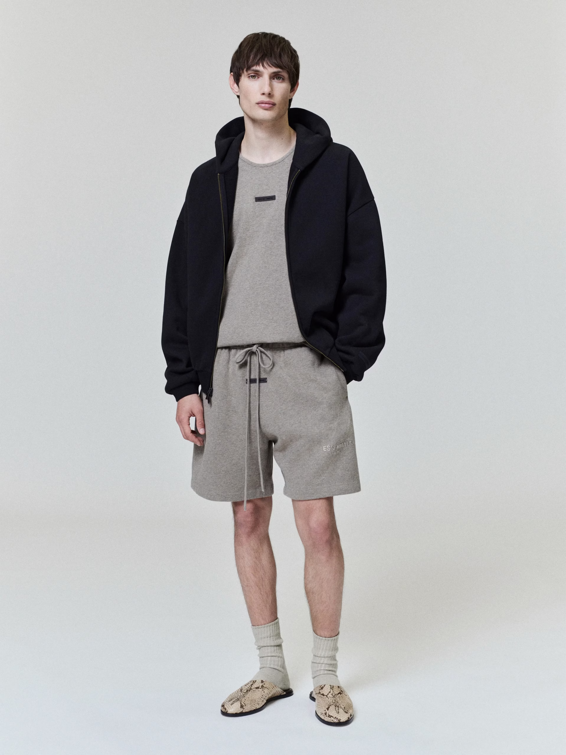 The Classic Zip-Up Hoodie is made from 480gsm core fleece to provide ideal comfort and structure. The zip-up hoodie style features a classic fit with signature Fear of God relaxed proportions. A new embossed Essentials Fear of God logo is branded across the back. Details include a double-layer hoodie, rib-knit cuffs, waist-hem, and side pockets. A Fear of God Essentials rubberized label is stitched on the hood and sleeve.