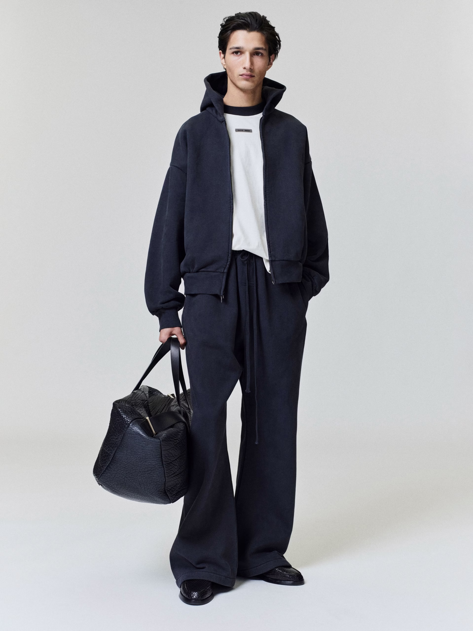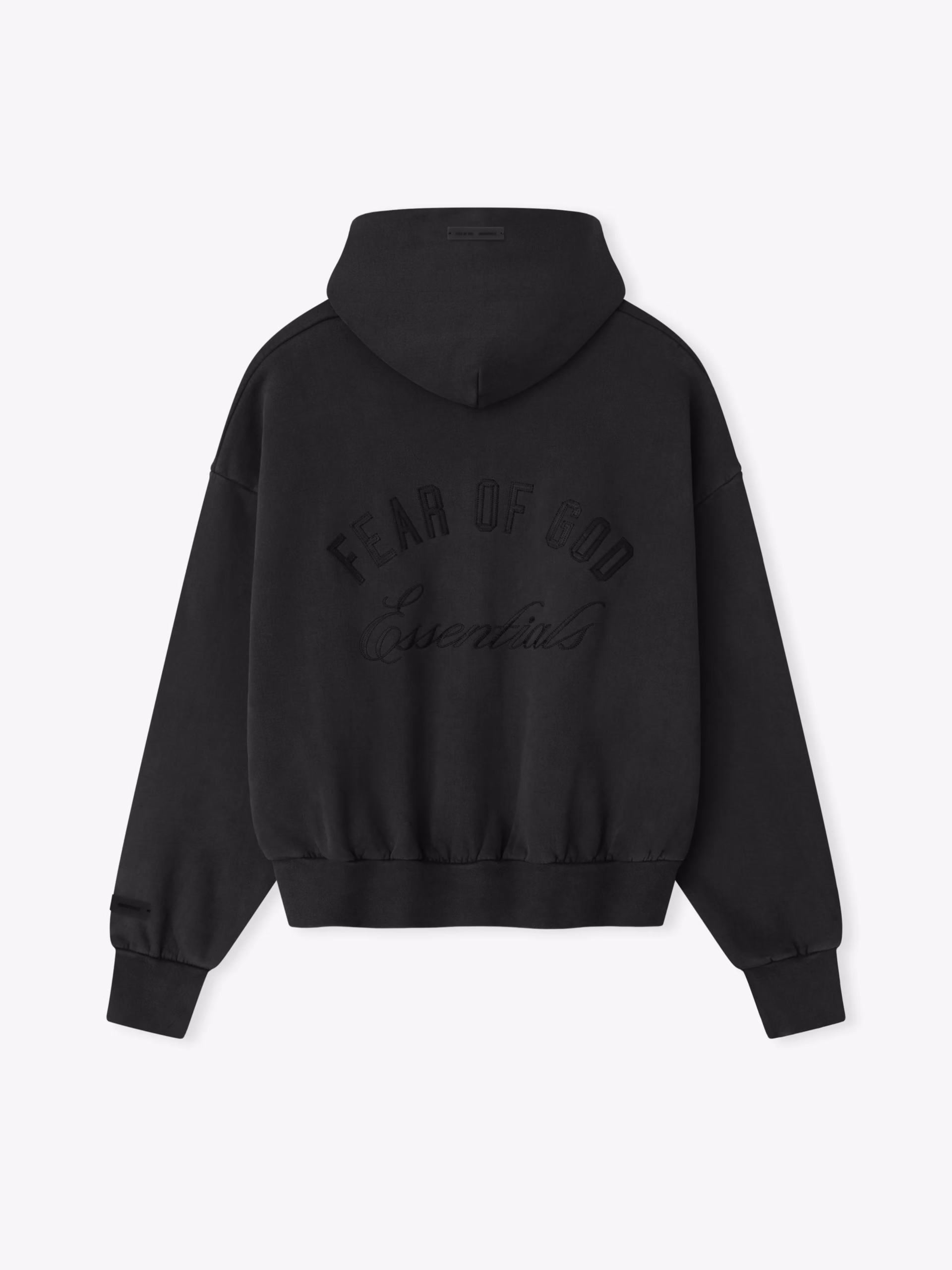 The Classic Fleece Full Zip Hoodie is crafted from 520gsm heavy fleece and treated with a pigment dye to create rich depth of color. Its classic silhouette is defined by an embroidered Fear of God Essentials logo on the back. Details include side pockets, rib-knit cuffs, and waist-hem. A Fear of God Essentials rubberized label stitched at the back collar.