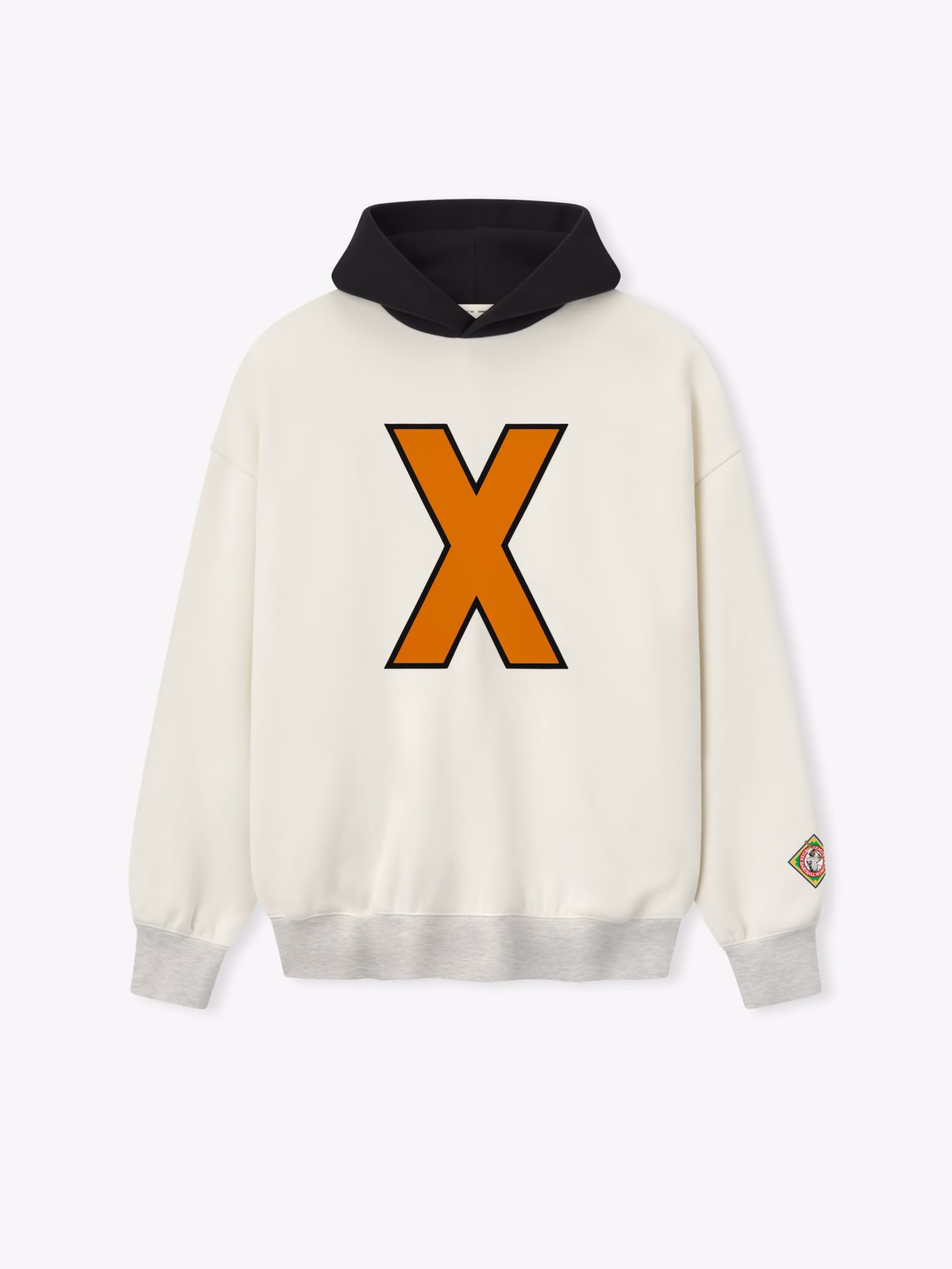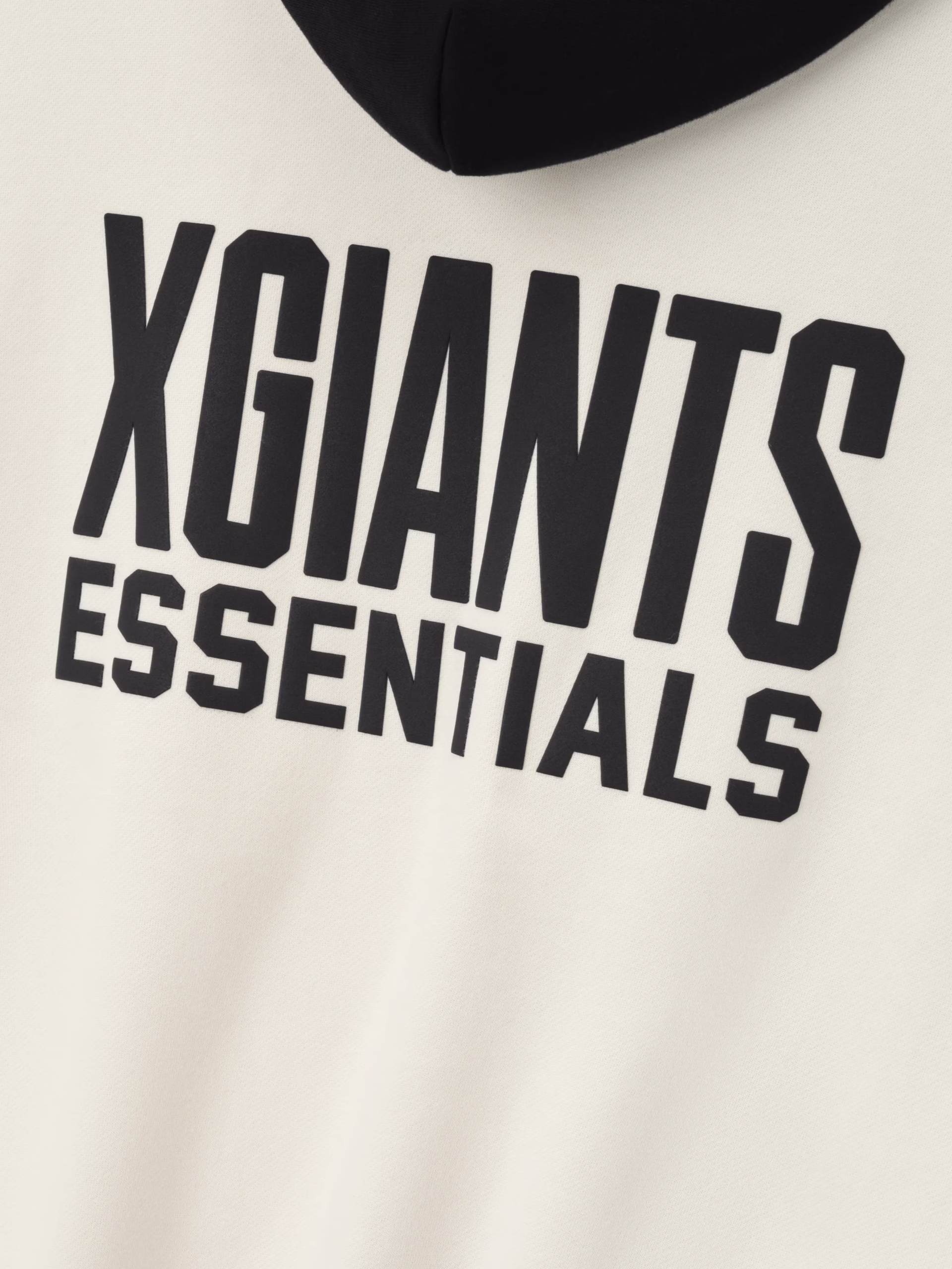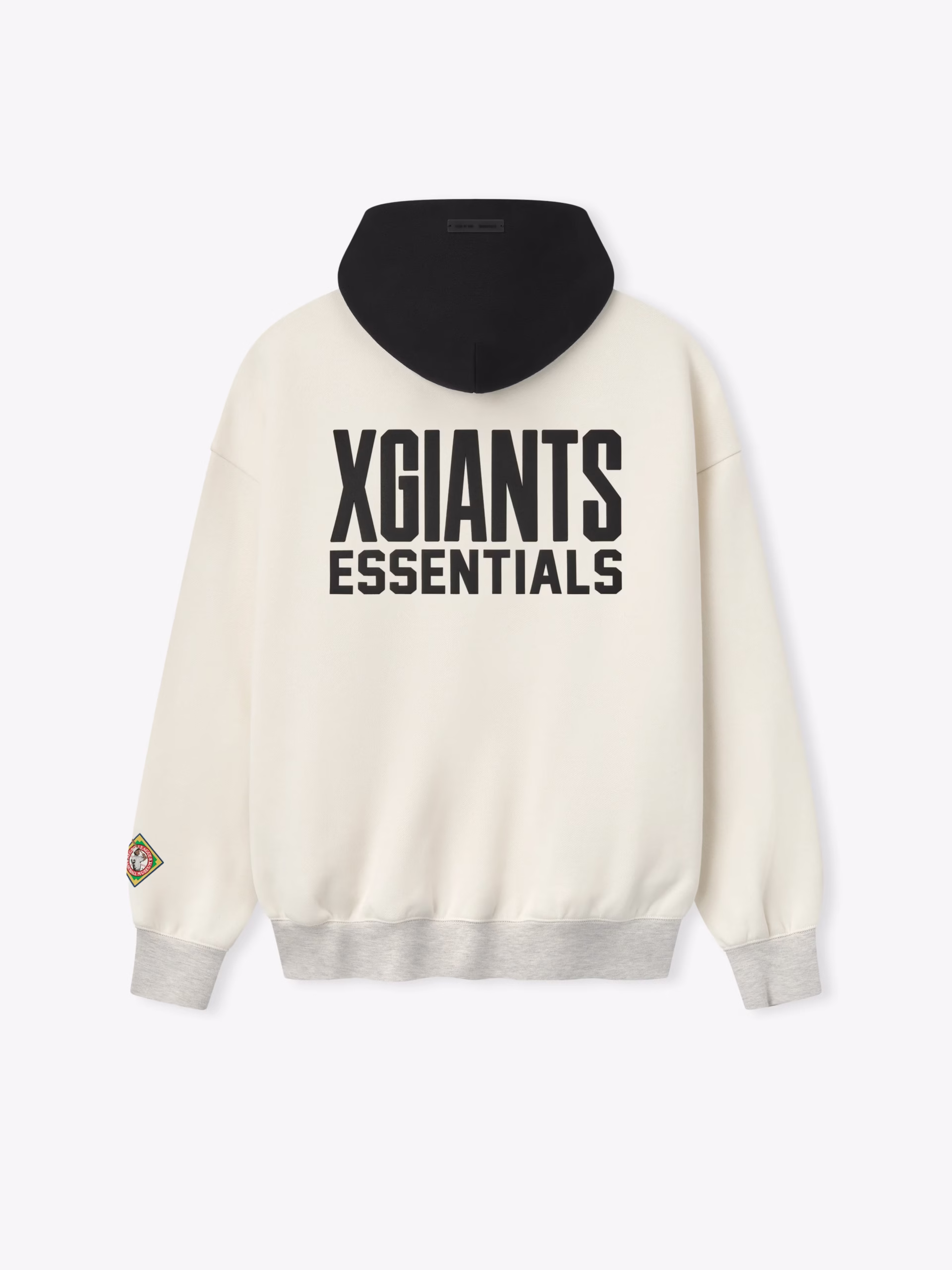 The Fear of God Essentials Cuban X-Giants Hoodie is crafted from core fleece and features a voluminous, cropped silhouette. The front displays a soft-touch X-GIANTS "X" graphic along with the Negro Leagues Baseball Museum jersey patch on the sleeve, and the back is branded with a puffer print "X-Giants Essentials." Additional details include a contrasting double layered hood, side seam pockets, and rib-knit at the cuffs and waist hem. A rubberized Fear of God Essentials label is attached on the hood.