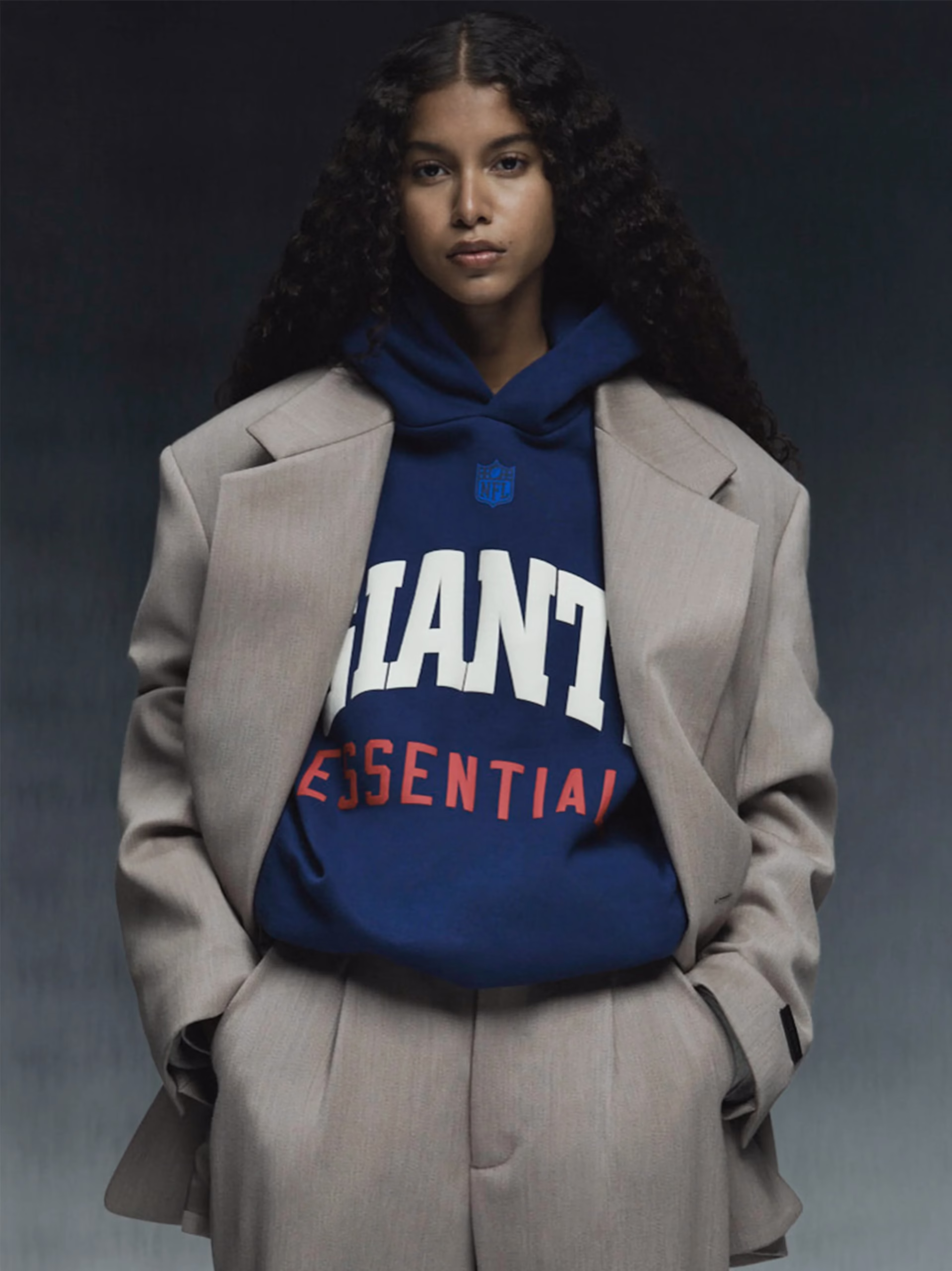 The Giants Sport Hoodie is crafted from pigment-dyed, heavyweight 520gsm cotton fleece, delivering a faded vintage feel and a sense of sports nostalgia. Designed in a relaxed Sport fit, the front features the iconic San Francisco Giants logo in a HD print, while the back showcases an San Francisco Essentials script lockup. Additional details include a MLB logo on the sleeve, side pockets, and rib-knit cuffs and waist hem. The look is finished with the signature rubberized Fear of God Essentials label at the hood.
