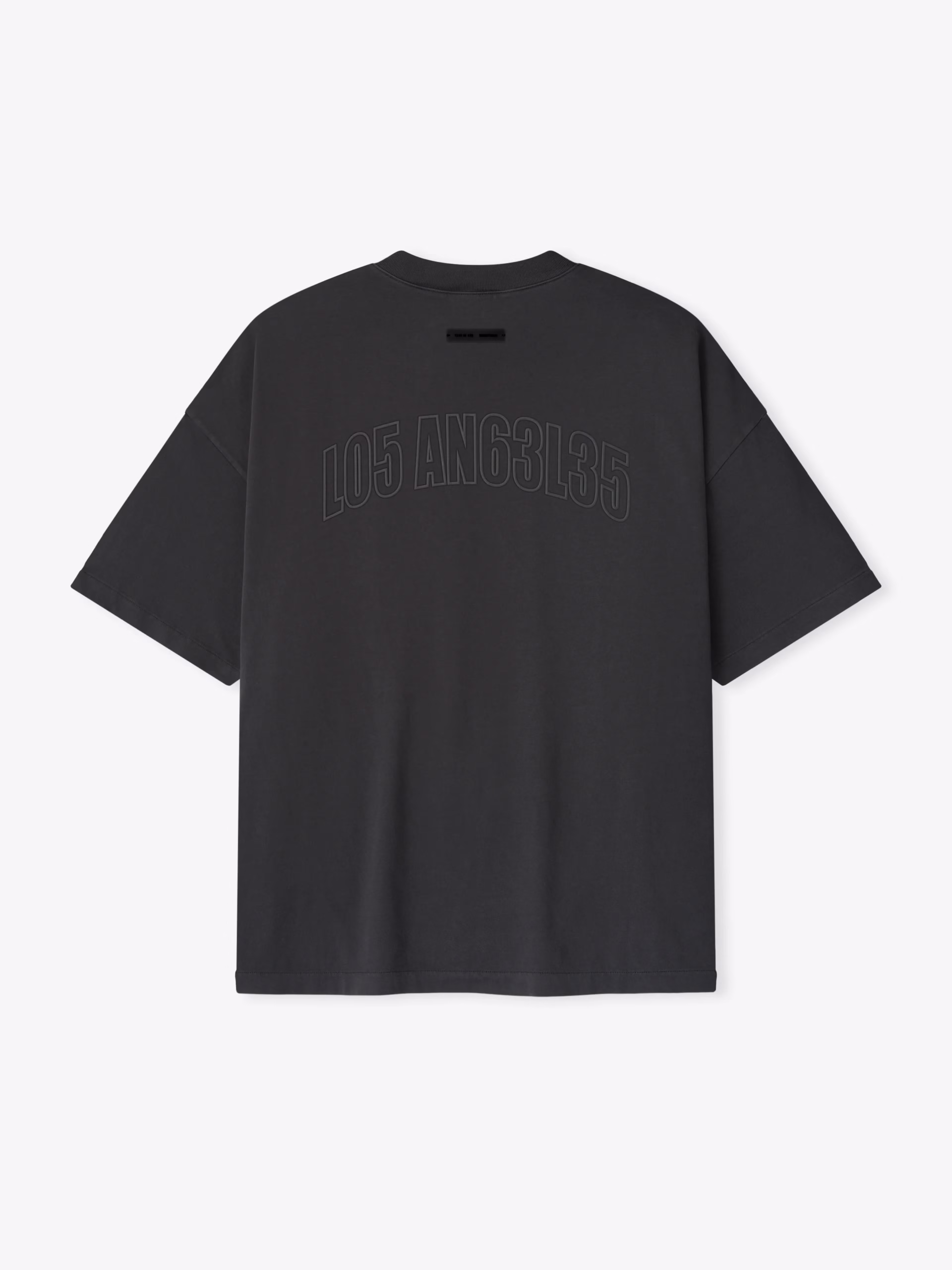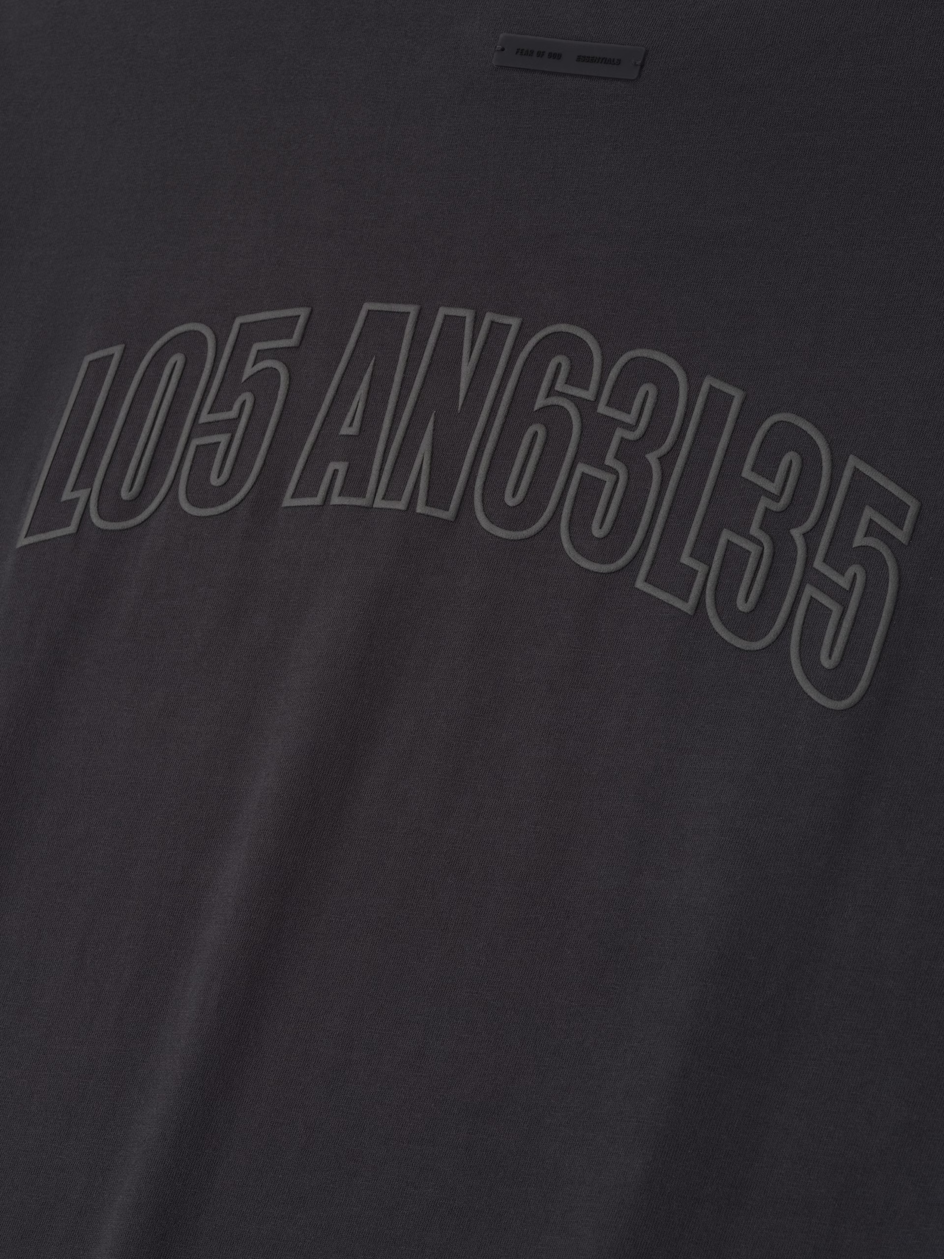 The City Exclusive Los Angeles 90s Tee is cut from 100% cotton jersey, offering a soft yet substantial hand feel. Designed in an oversized 90s-inspired silhouette, it features exaggerated proportions with dropped shoulders for a relaxed drape. The front is defined by a puff-print application of the alpha-numeric Essentials logo "3553NT1AL5", and on the back "L05 ANG63L35" graphic. The signature rubberized Fear of God Essentials label at the collar.