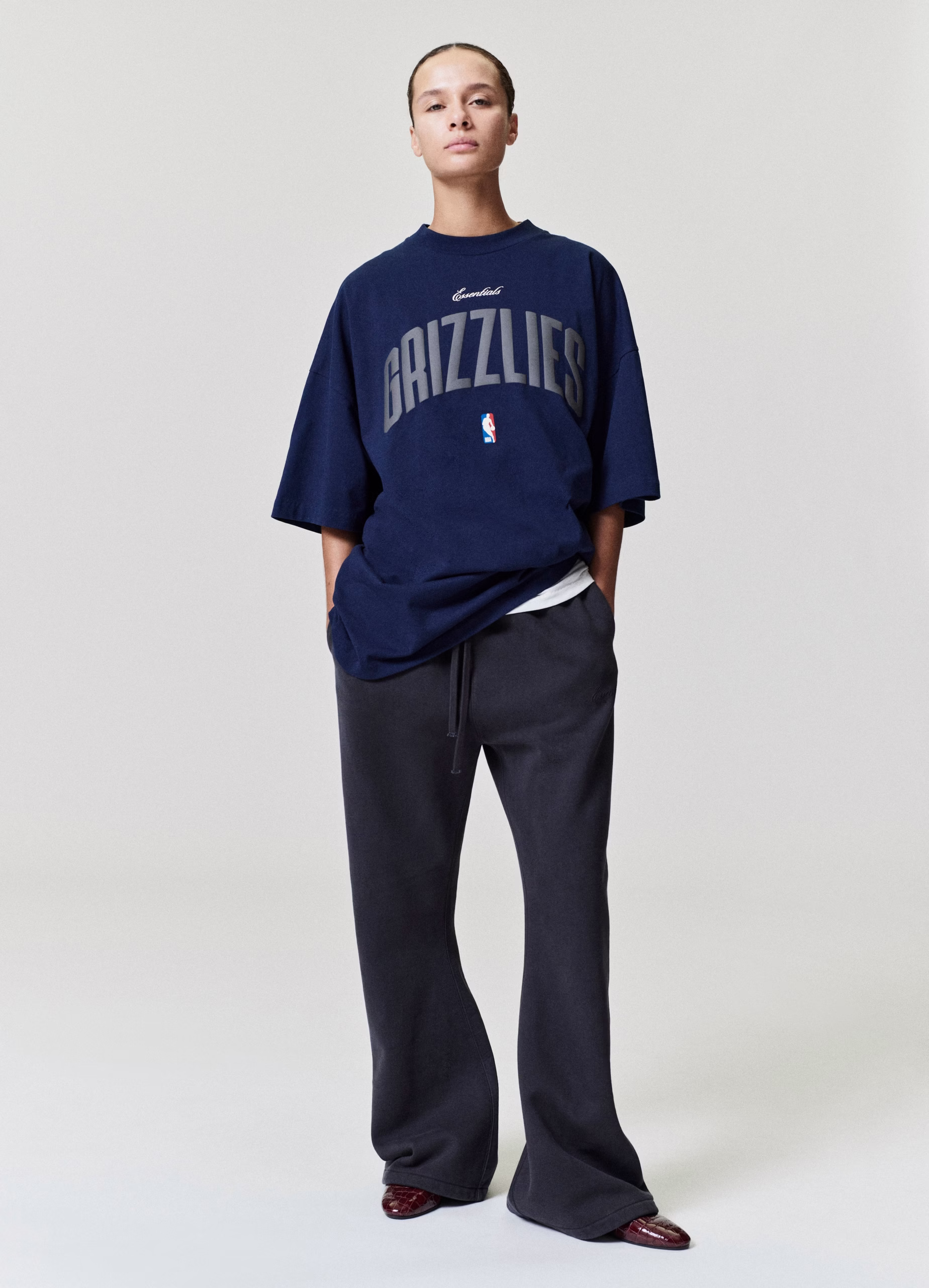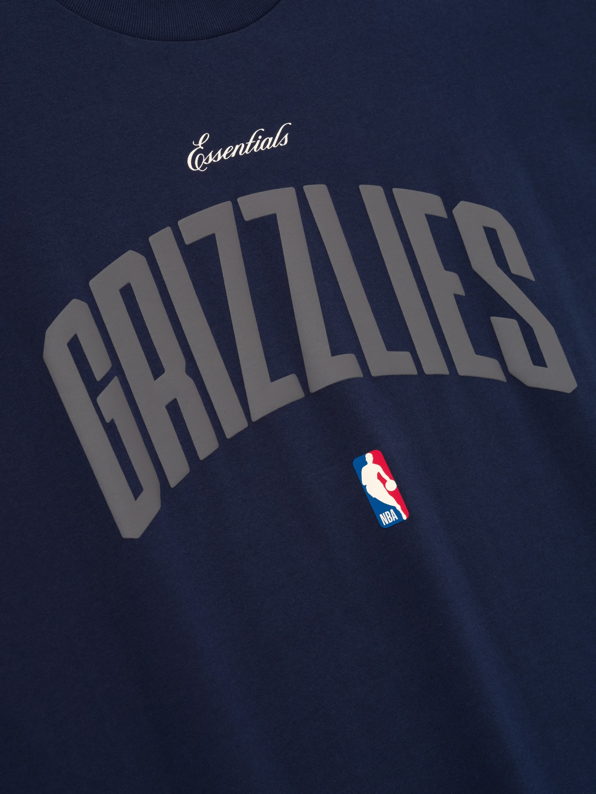 The Memphis Grizzlies  90s Tee is cut from 100% cotton heavy jersey, offering a soft yet substantial hand feel. Designed in an oversized 90s-inspired silhouette, it features exaggerated proportions with dropped shoulders for a relaxed drape. The front is defined by a puff-printed ESSENTIALS GRIZZLIES lockup alongside the NBA insignia. The Fear of God Essentials label at the collar.