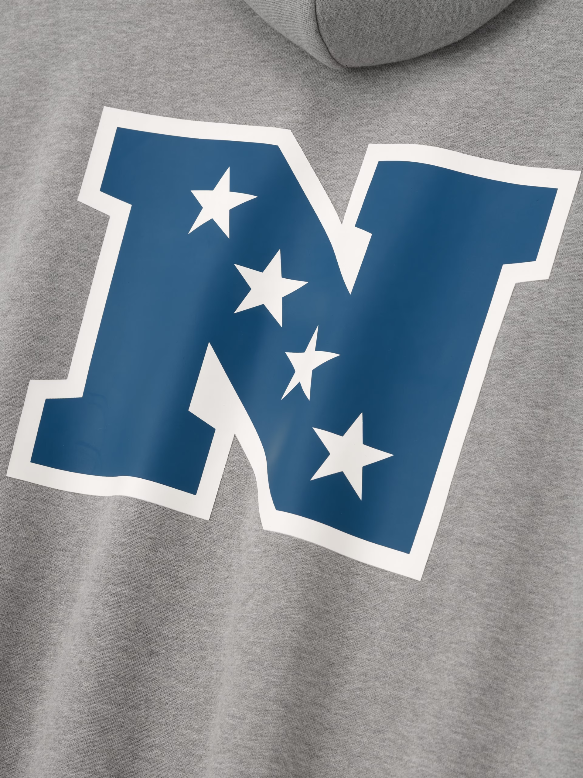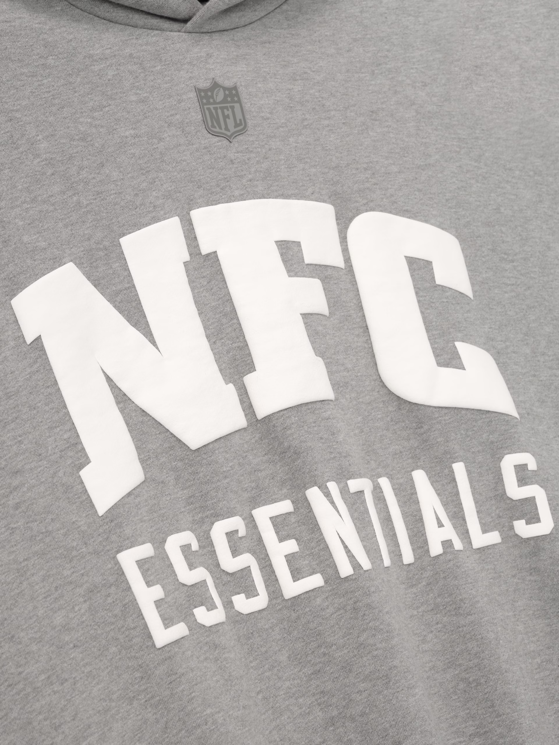The National Sport Hoodie is crafted from heavy 480gsm core fleece and cut in a relaxed sport fit. The front features a bold "National Essentials" puff-print graphic while the back is finished with National Football Conference logo. Additional features include side pockets, rib-knit at the cuffs and waist hem. The signature rubberized Fear of God Essentials label accents the hood.