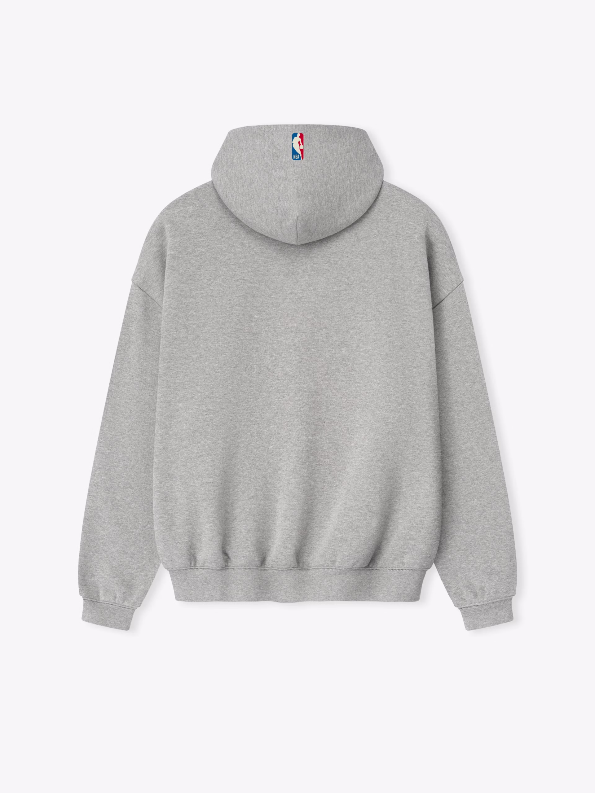 The NBA 90s Hoodie is crafted from a heavy 480GSM fleece and designed in a relaxed, 90s-inspired fit. The front showcases a bold puff-print “NBA ESSENTIALS” graphic, complemented by an official NBA logo detail on the hood. Additional features include a kangaroo pocket, rib-knit cuffs and hem, and a signature rubberized Fear of God Essentials label accenting the hood.