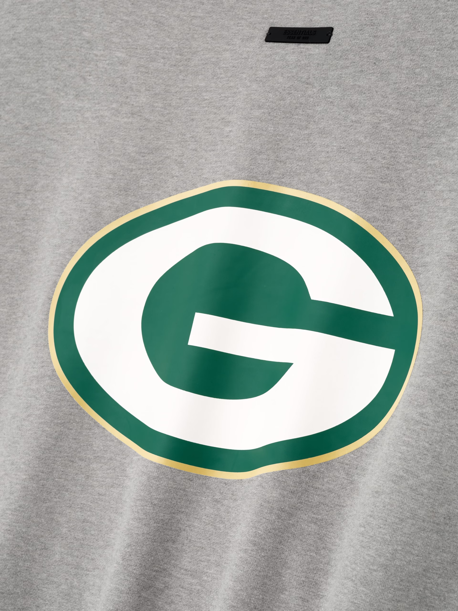 The Packers Sport Crewneck is crafted from heavy 480gsm core fleece and cut in a relaxed sport fit. The front features a bold "Packers Essentials" puff-print graphic, while the back displays the official Green Bay Packers logo. Additional details include a kangaroo pocket and rib-knit collar, cuffs, and waist hem. The look is finished with the signature rubberized Fear of God Essentials label.