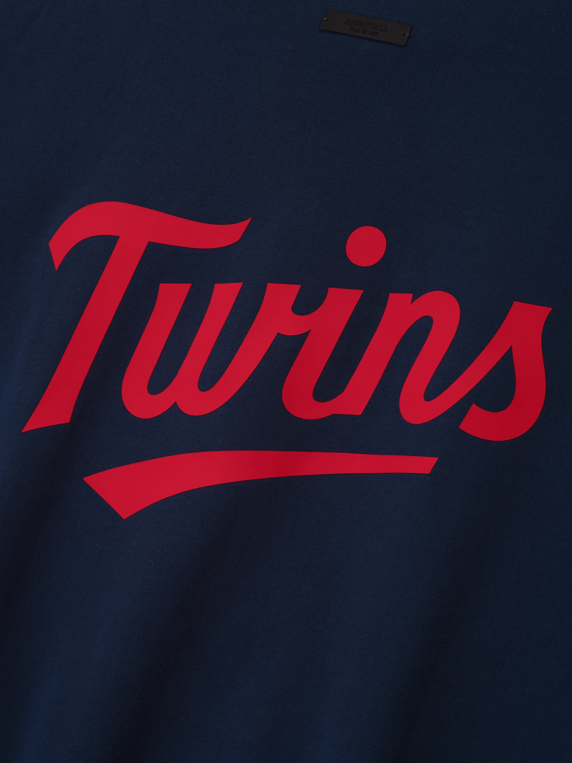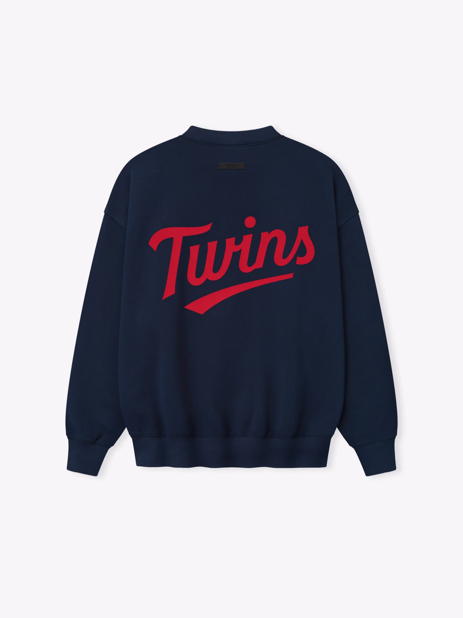 The Twins Sport Crewneck is crafted from core fleece, offering an elevated balance of softness, structure, and lasting comfort. Cut in a relaxed sport fit, it drapes with more ease through the body and extended length compared to the Essentials classic silhouette. The front features a bold puffer-print graphic reading “Minnesota Essentials” alongside the MLB insignia, while the back is finished with the official Twins logo. Additional details include a kangaroo pocket, rib-knit collar, cuffs and hem. The signature rubberized Fear of God Essentials label accents the back.
